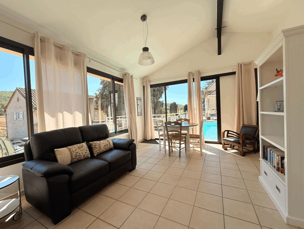 Le gîte « Le Verger » est également équipé d’une terrasse dallée et claustra avec une vue magnifique sur la vigne et agrémentée d’une table et chaises de jardin mais aussi d’un salon extérieur avec fauteuils, table basse et transats.